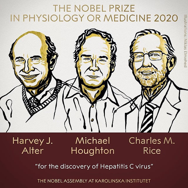 फिजियोलॉजी या चिकित्सा 2020 में नोबेल पुरस्कार सोमवार को अमेरिका के हार्वे जे ऑल्टर और चार्ल्स एम.राइस और ब्रिटिश वैज्ञानिक माइकल ह्यूटन को संयुक्त रूप से हेपेटाइटिस-सी वायरस की खोज के लिए दिया गया। करोलिंस्का इंस्टीट्यूट में नोबेल असेंबली ने कहा कि ऑल्टर, ह्यूटन और राइस ने सेमिनल खोजें कीं, जिस कारण हेपेटाइटिस-सी वायरस की पहचान हुई।