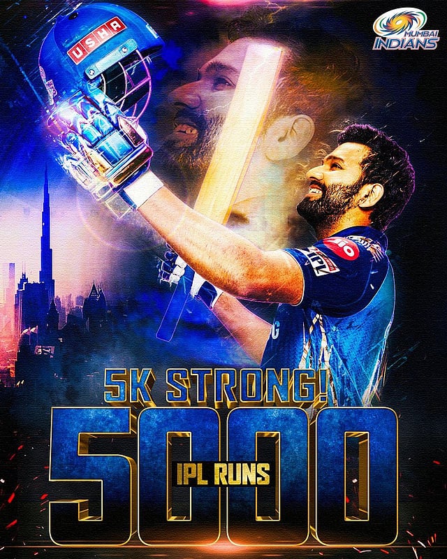 रोहित ने तेज गेंदबाज मोहम्मद शमी की पहली गेंद पर चौका लगाकर आईपीएल में अपने 5000 रन पूरे किए। उन्होंने 192 मैचों में यह उपलब्धि हासिल की है। रोहित ने आईपीएल में अब तक एक शतक और 37 अर्धशतक लगाए हैं।